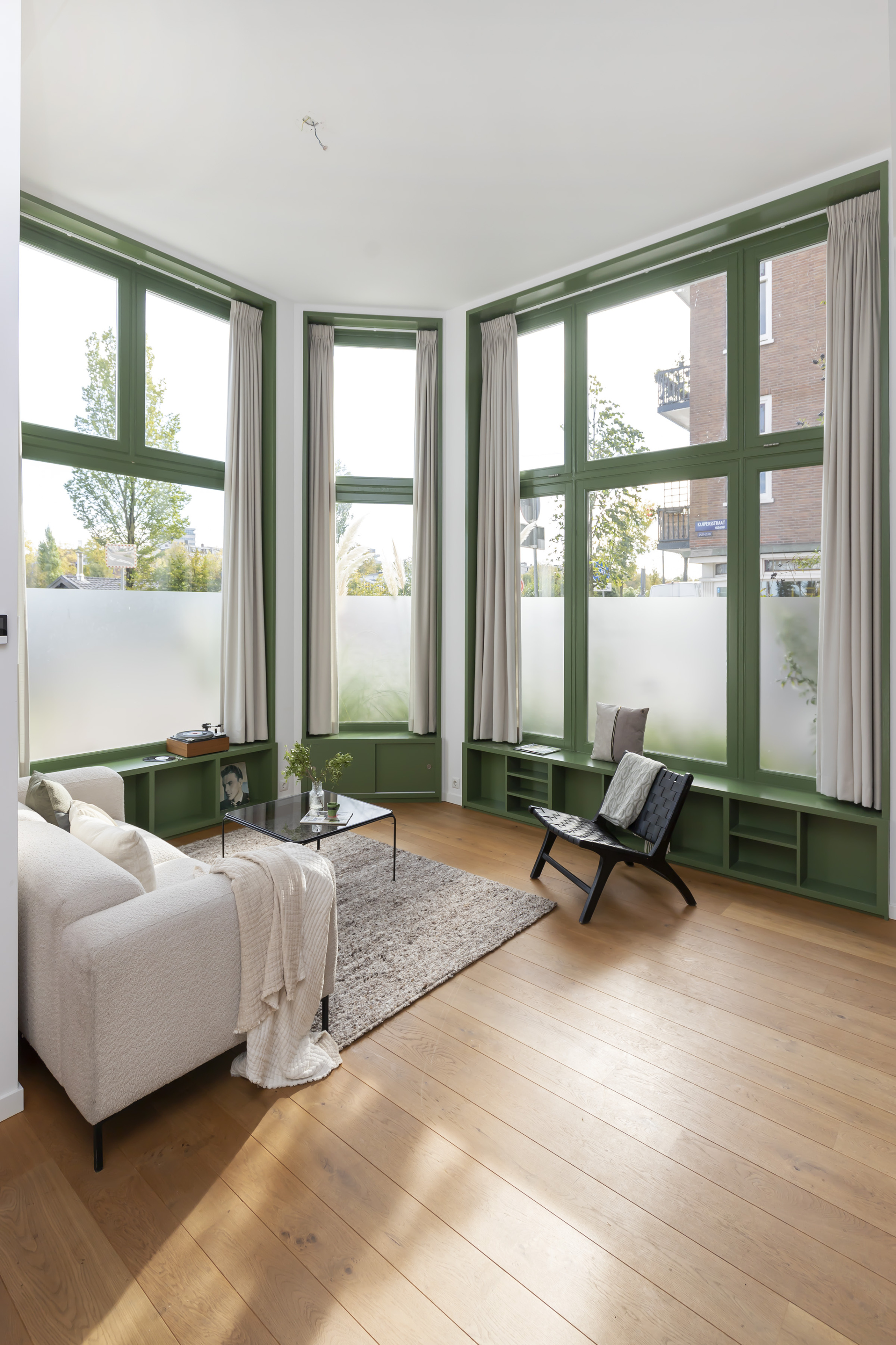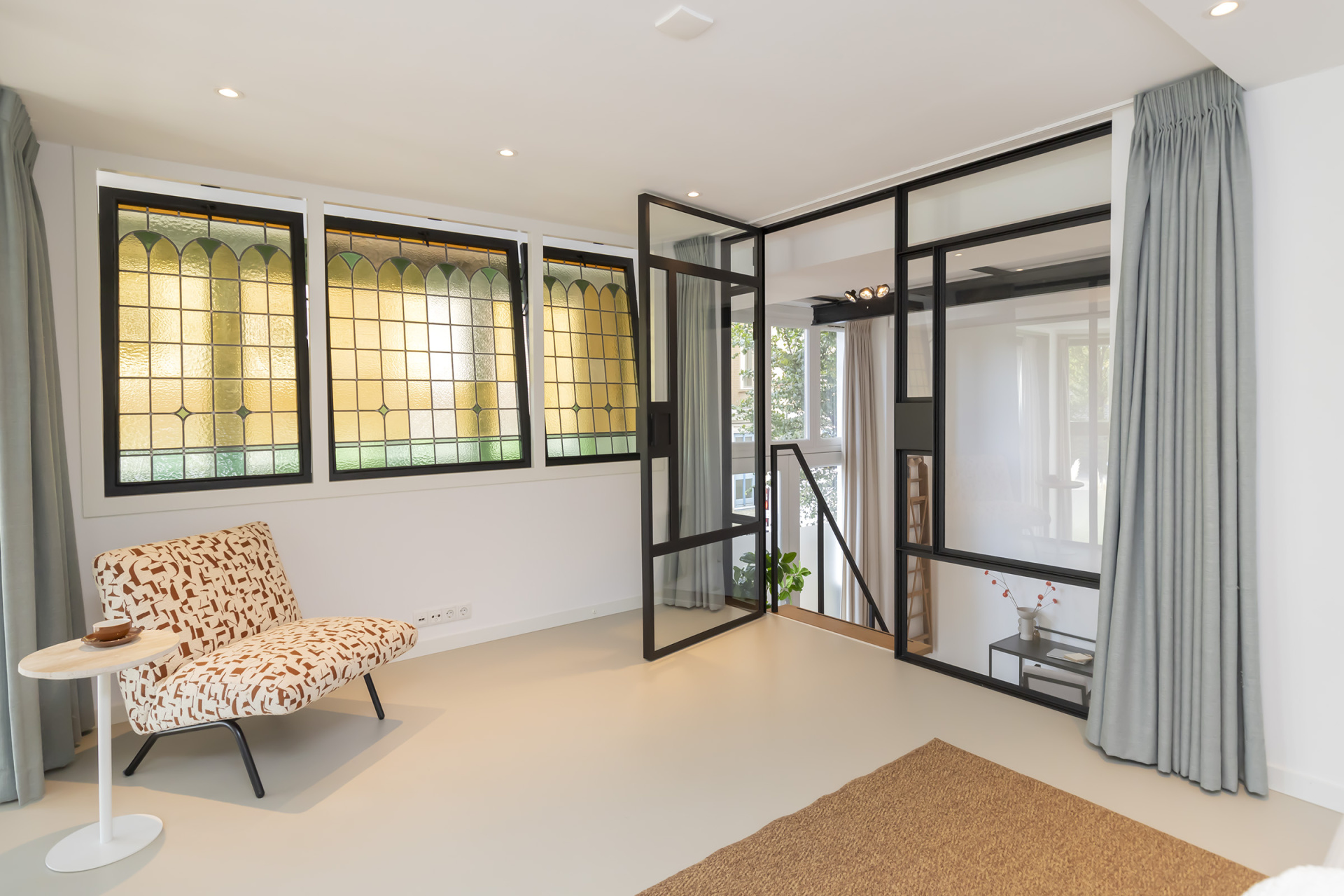 Hoge plafonds en grote raampartijen met veel lichtinval