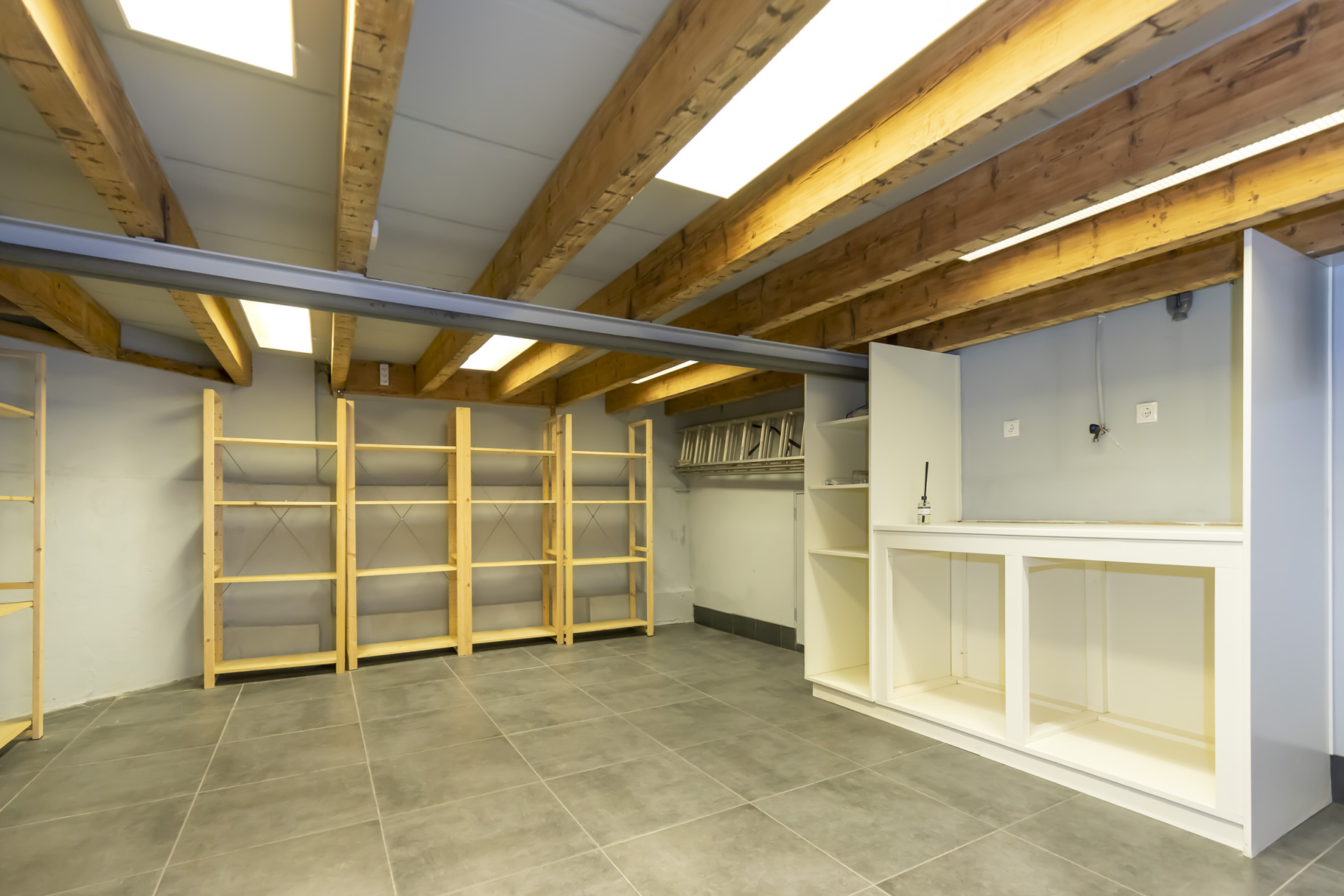 De ruime kelder, die eventueel om te bouwen is naar een ruimte voor studie of bioscoop, heeft de aansluiting voor was- en droger. Via de kleder is een betegelde kruipruimte bereikbaar voor nodige opslag.