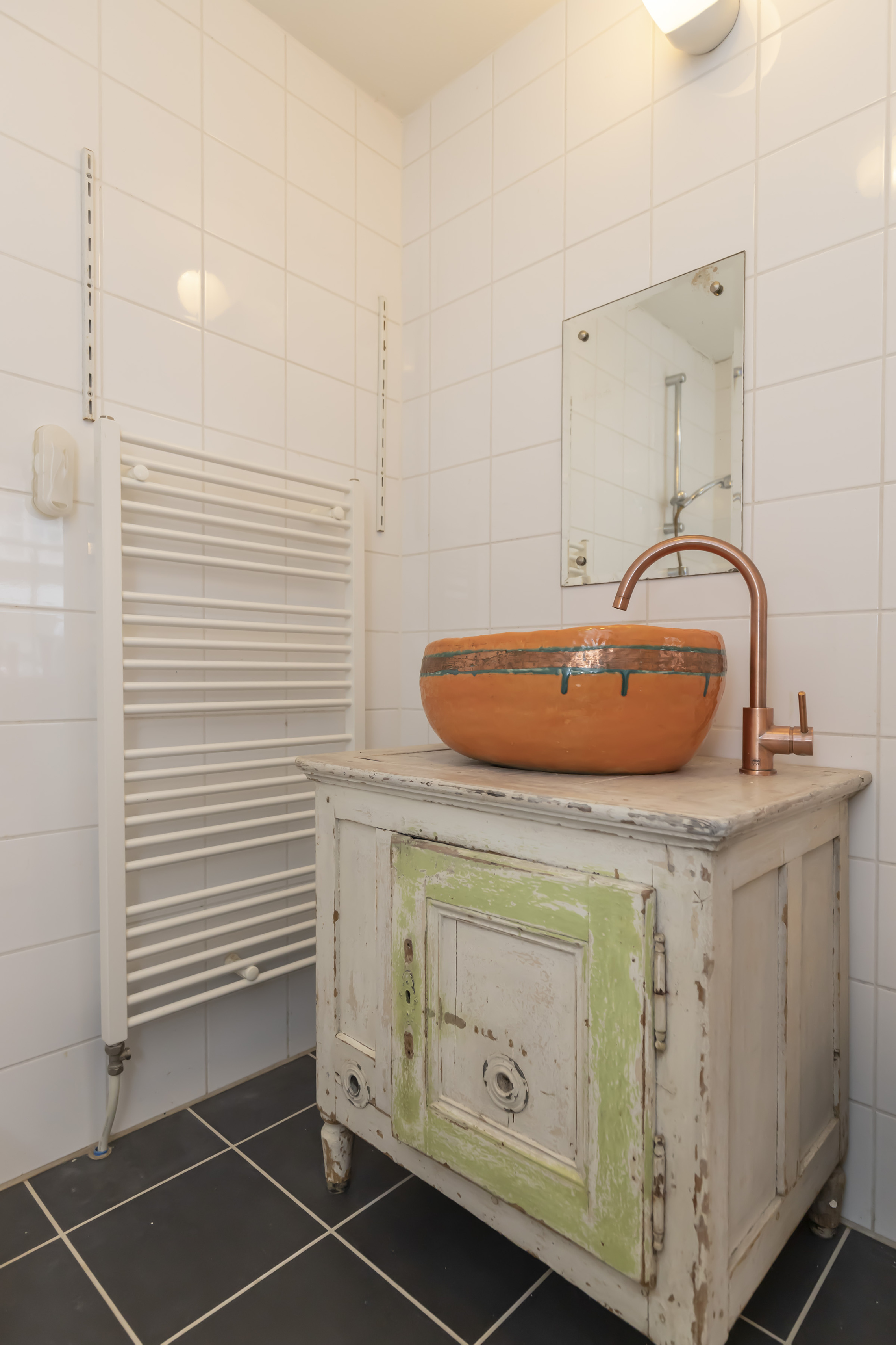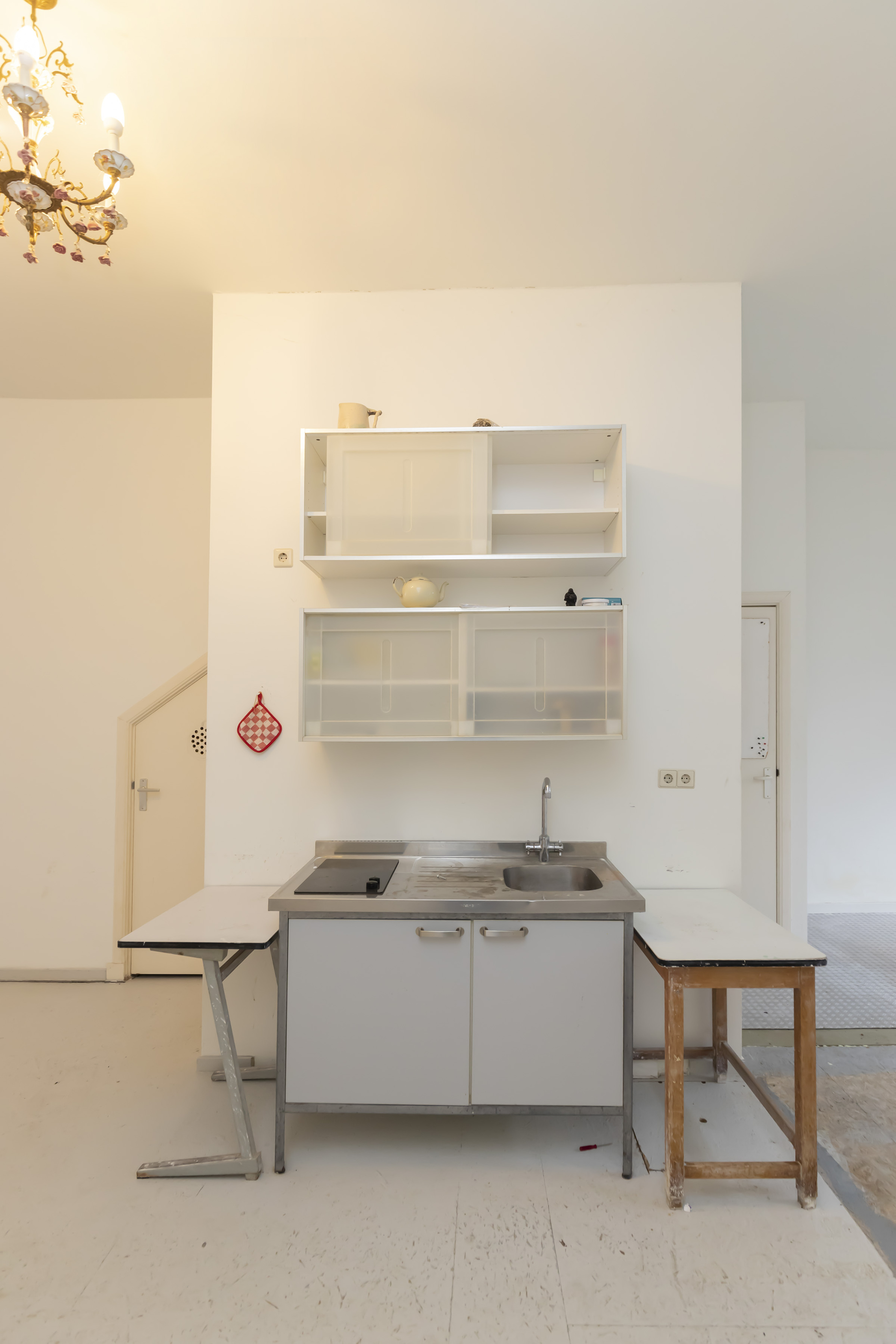 Achter de eigen voordeur is 1 grote cascoruimte met een keukentje en een badkamer.