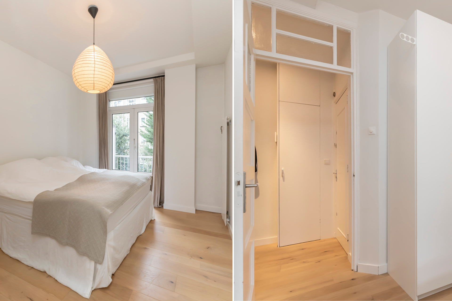 Aan de achterzijde van het appartement liggen twee slaapkamers, beide rustig gelegen. De master bedroom biedt toegang tot het balkon.