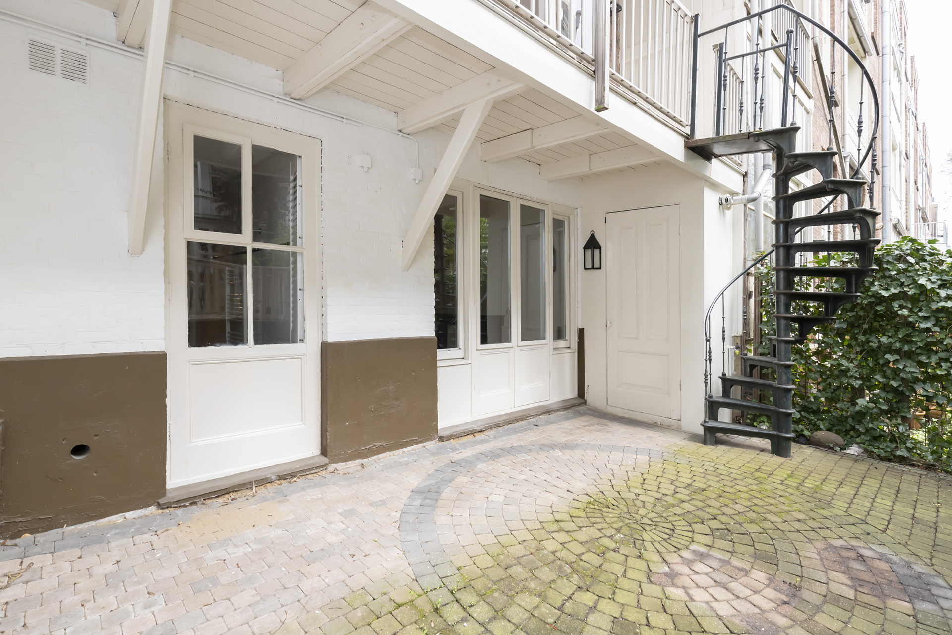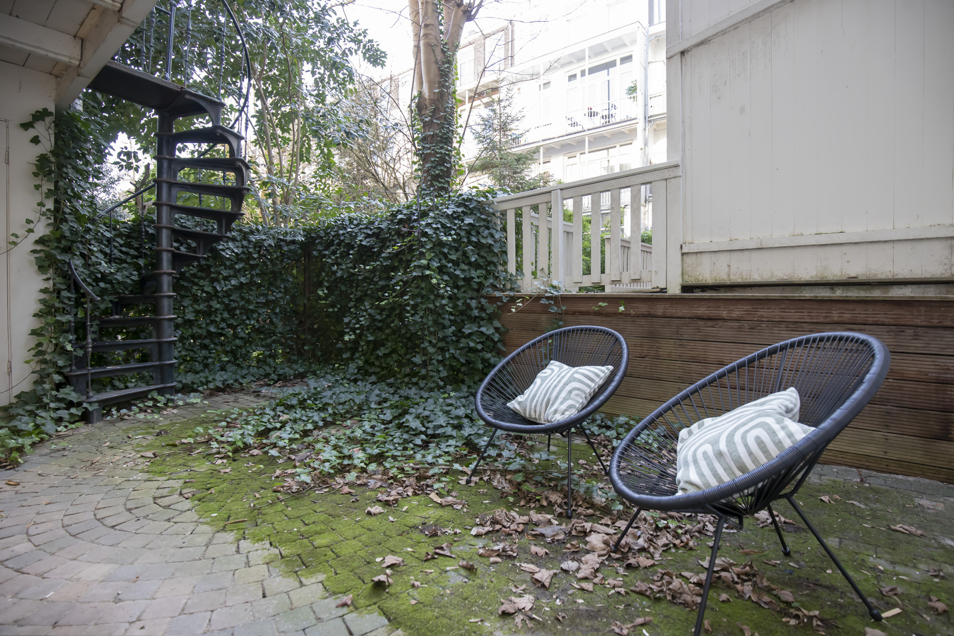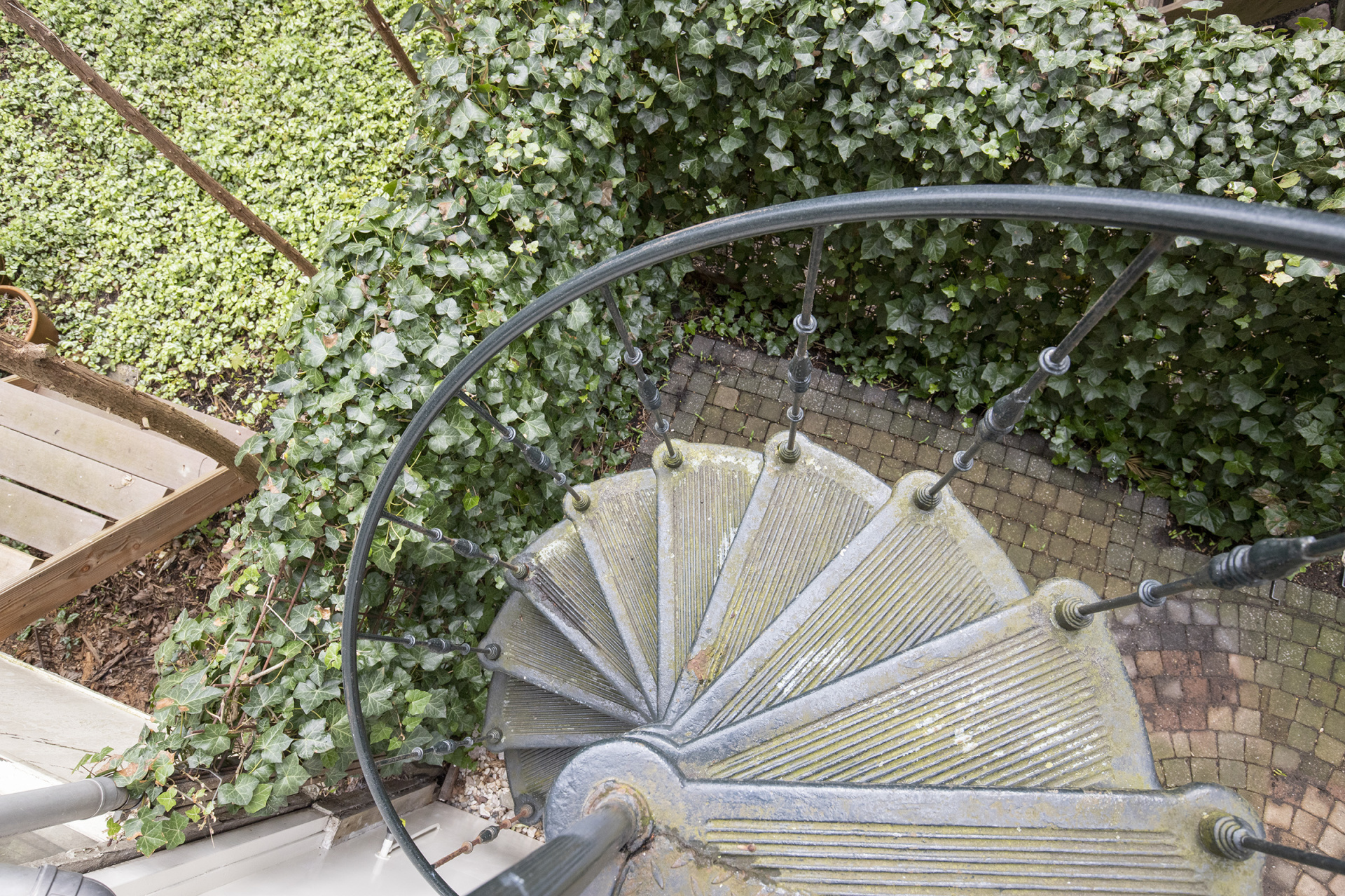 The approx. 25 m² south-facing garden offers an excellent balance of sunshine and privacy. Direct access from both the lower ground floor and the raised ground floor via the charming spiral staircase enhances the overall living comfort.