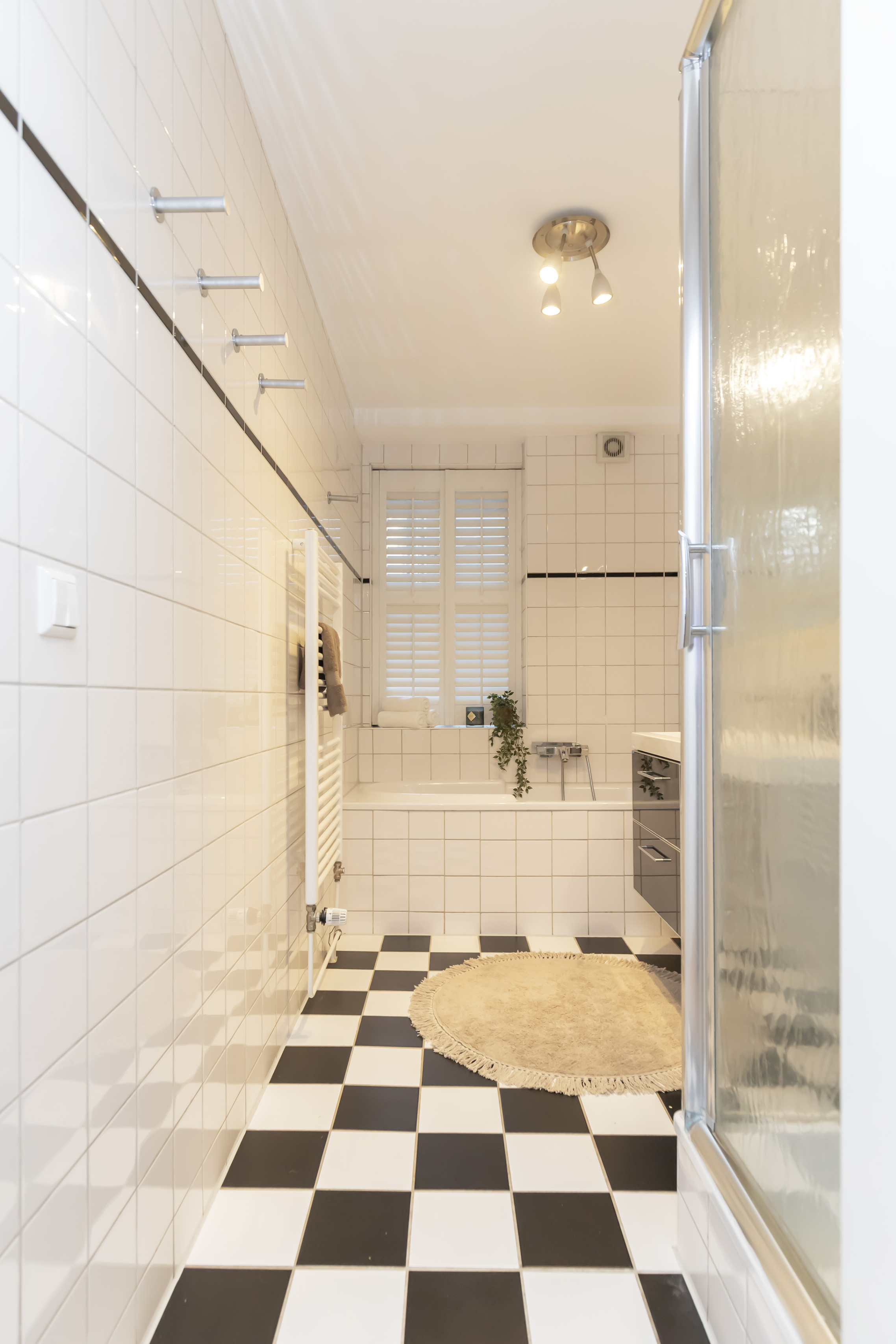 De badkamer is compleet uitgevoerd met ligbad, separate douche, wastafelmeubel en designradiator. Daarnaast is er een aparte wasruimte, een tweede separaat toilet en extra bergruimte in de interne berging.