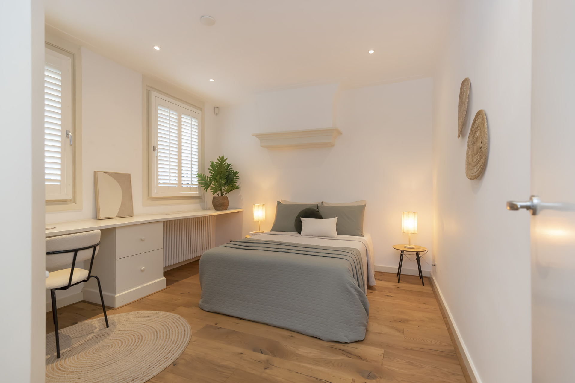 De tweede slaapkamer is eveneens goed bemeten en flexibel in te delen als slaap-, werk- of logeerkamer.
