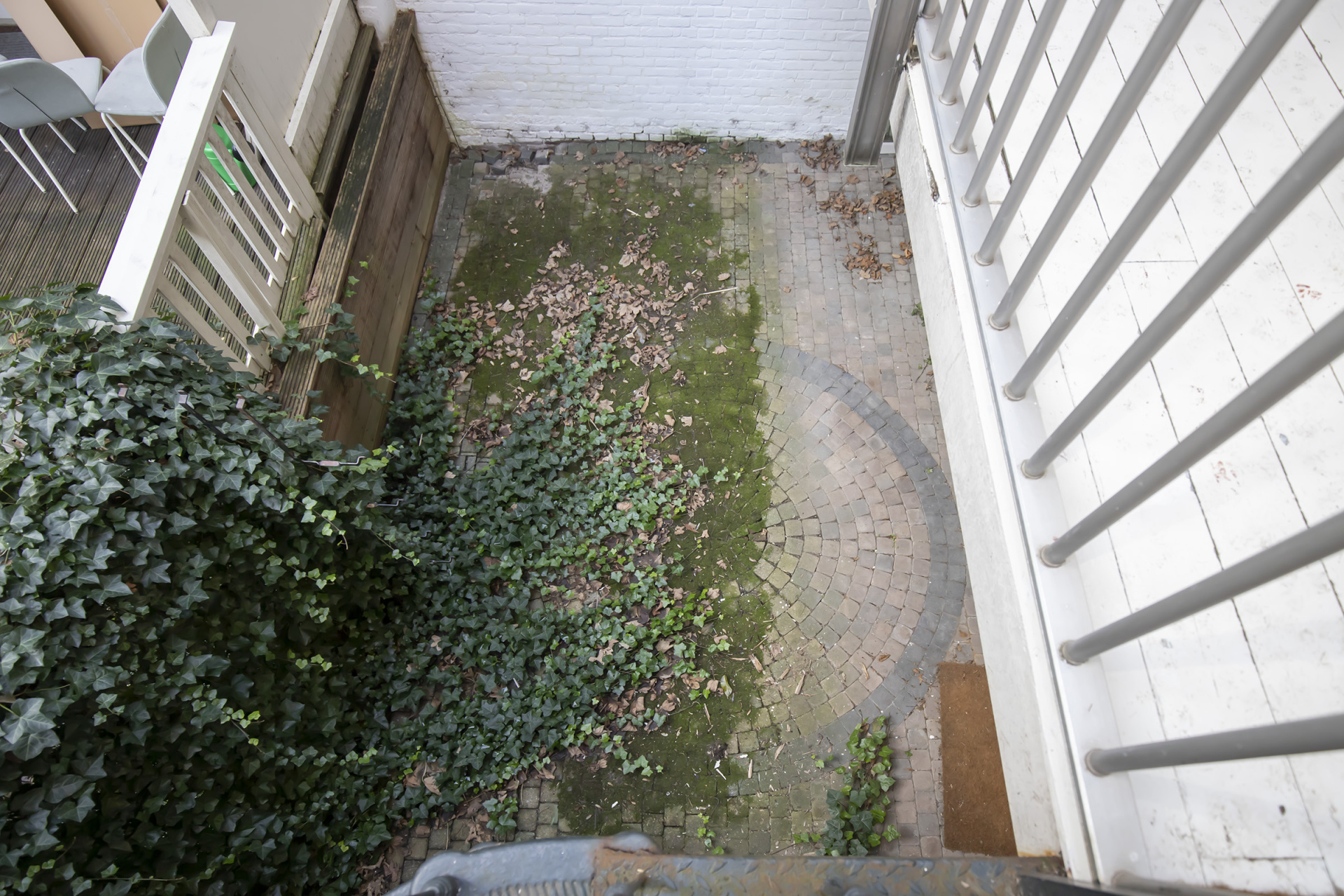 Via het balkon is met een vaste trap de ca. 25 m² grote achtertuin op het zuiden bereikbaar — beschut gelegen en met veel privacy.