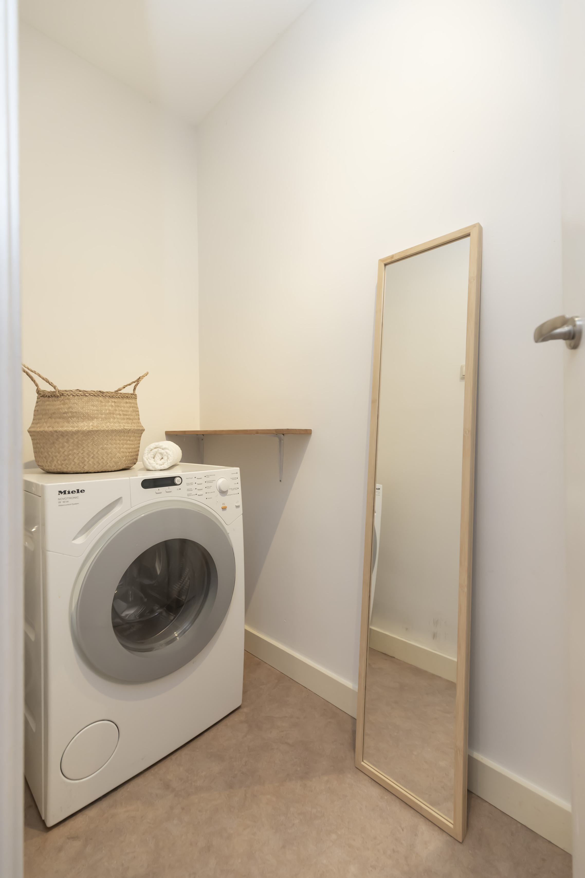 The bathroom is fully equipped with a bathtub, separate shower, vanity unit and designer radiator. In addition, there is a separate laundry room, a second toilet and extra storage space in the internal storage room.